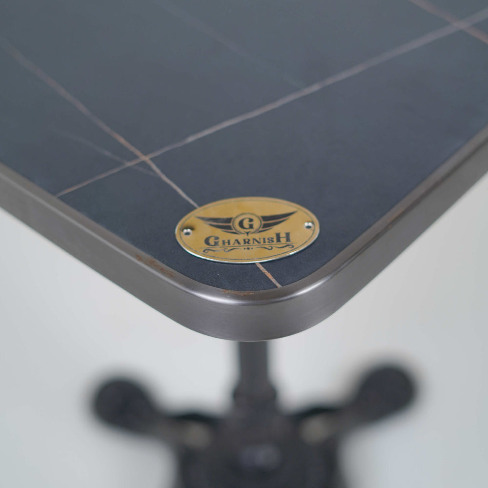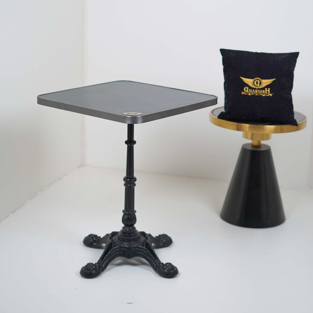 4 Leg Cast Iron Table Base Tile Top With Grey Metal Edge Banding