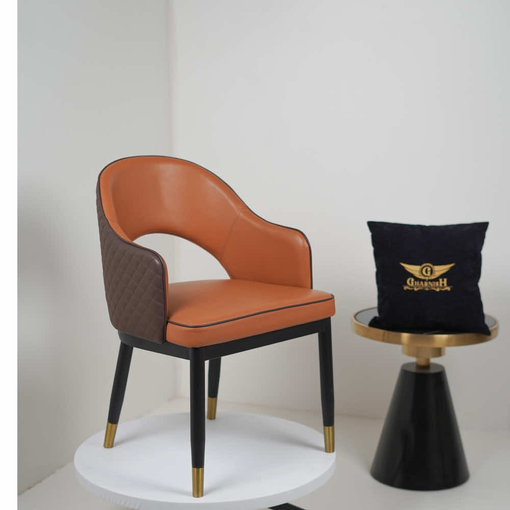 Mark Leather Dining Chair in Orange Color