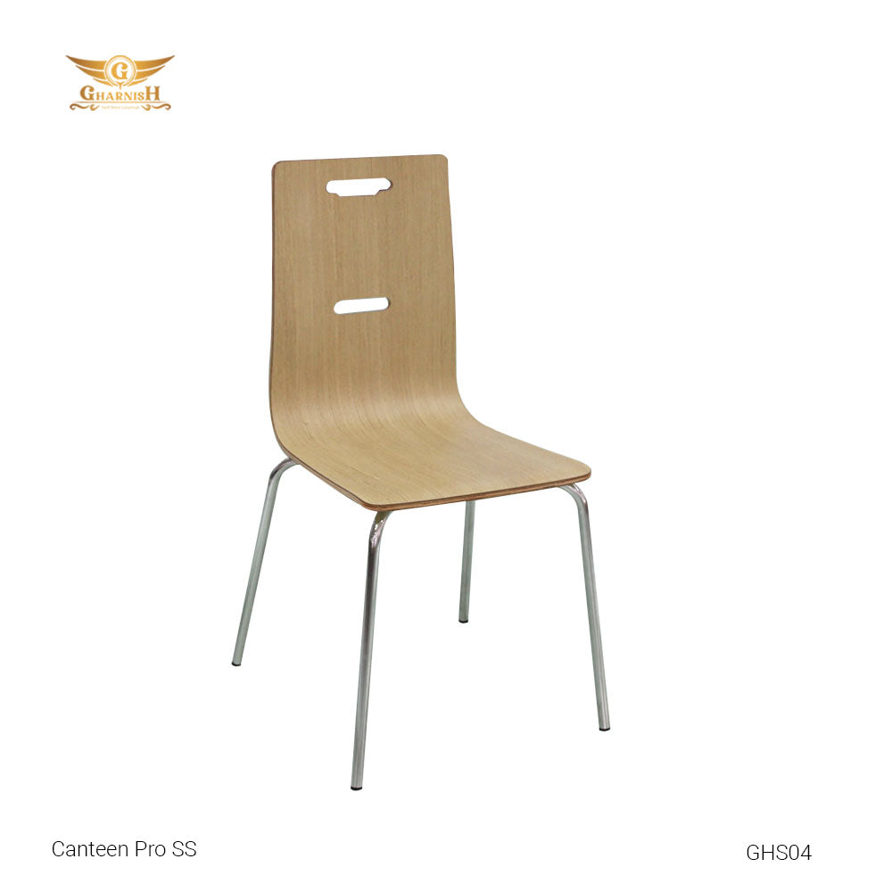 The Canteen Pro SS set includes the Restaurant SS dining table with wooden top and wooden chairs with SS legs. The table comes in various sizes for 4 seater and 6 seater.