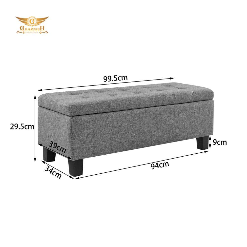 The Gharnish Upholstered Storage Ottoman (Charcoal, Light Grey) brings spacious and stylish storage to any bedroom! Featuring a modern, tufted design and neutral tones, this storage ottoman suits just about any space - whether it be bedroom, living room, lounge or hallway. Made with sturdy wooden legs and foam padding, this ottoman adds more than style and storage to your home, providing a sturdy and comfortable place to sit and rest. Available in Charcoal, and Light Grey.