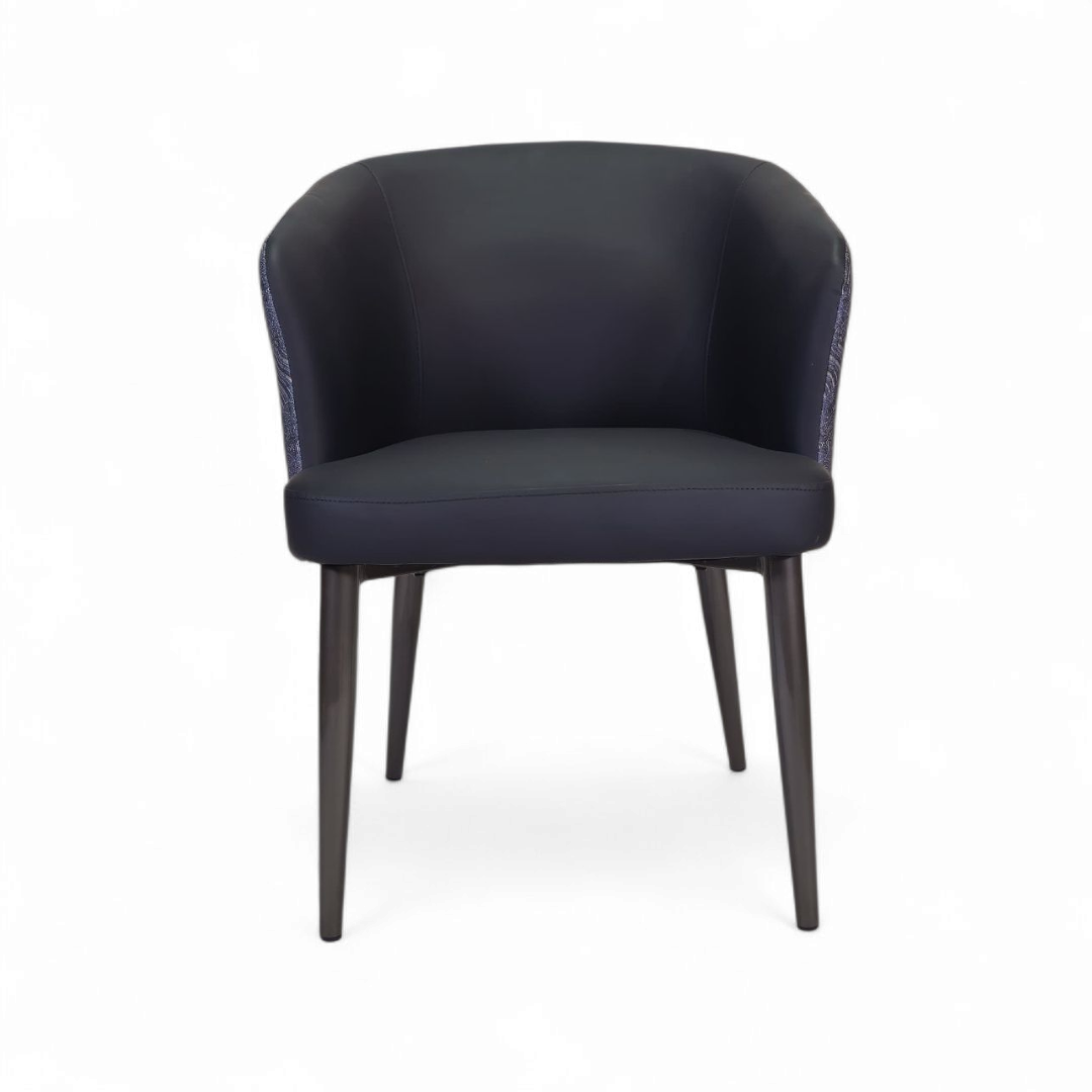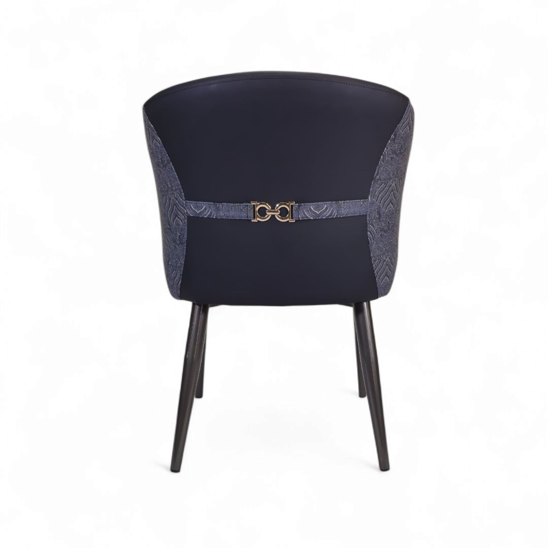 Add a splash of style to your dining space with the Myra Dark Blue Chair! This playful yet sophisticated seat features a comfy leather cushion and a chic decorative back belt, making every meal feel like a special occasion. Ideal for both modern restaurant dining and your own home, it blends luxury and comfort effortlessly. Elevate your décor with this elegant, upholstered chair that’s as stylish as it is inviting, perfect for creating a memorable dining experience wherever it’s placed.